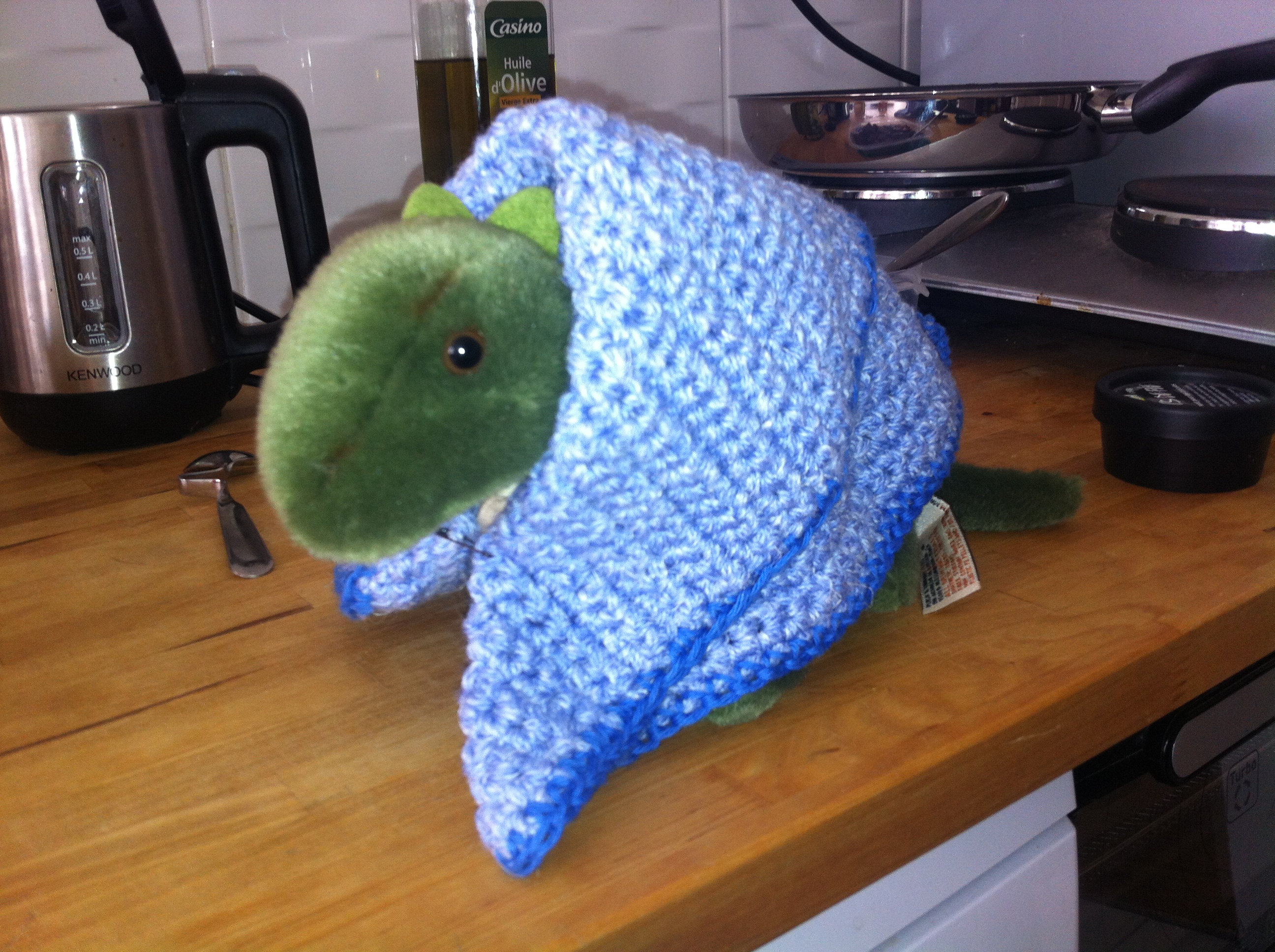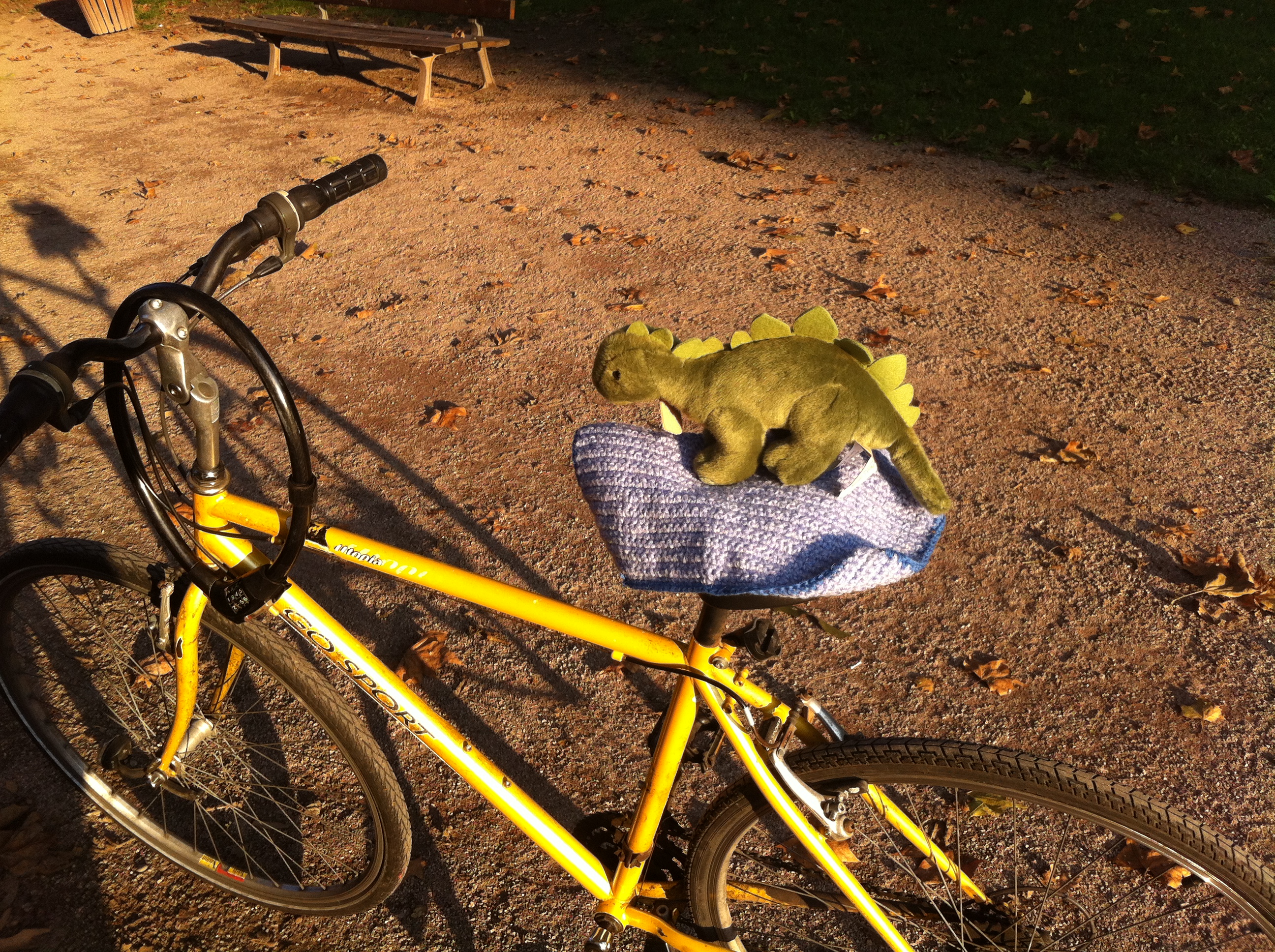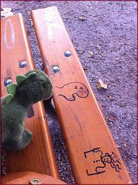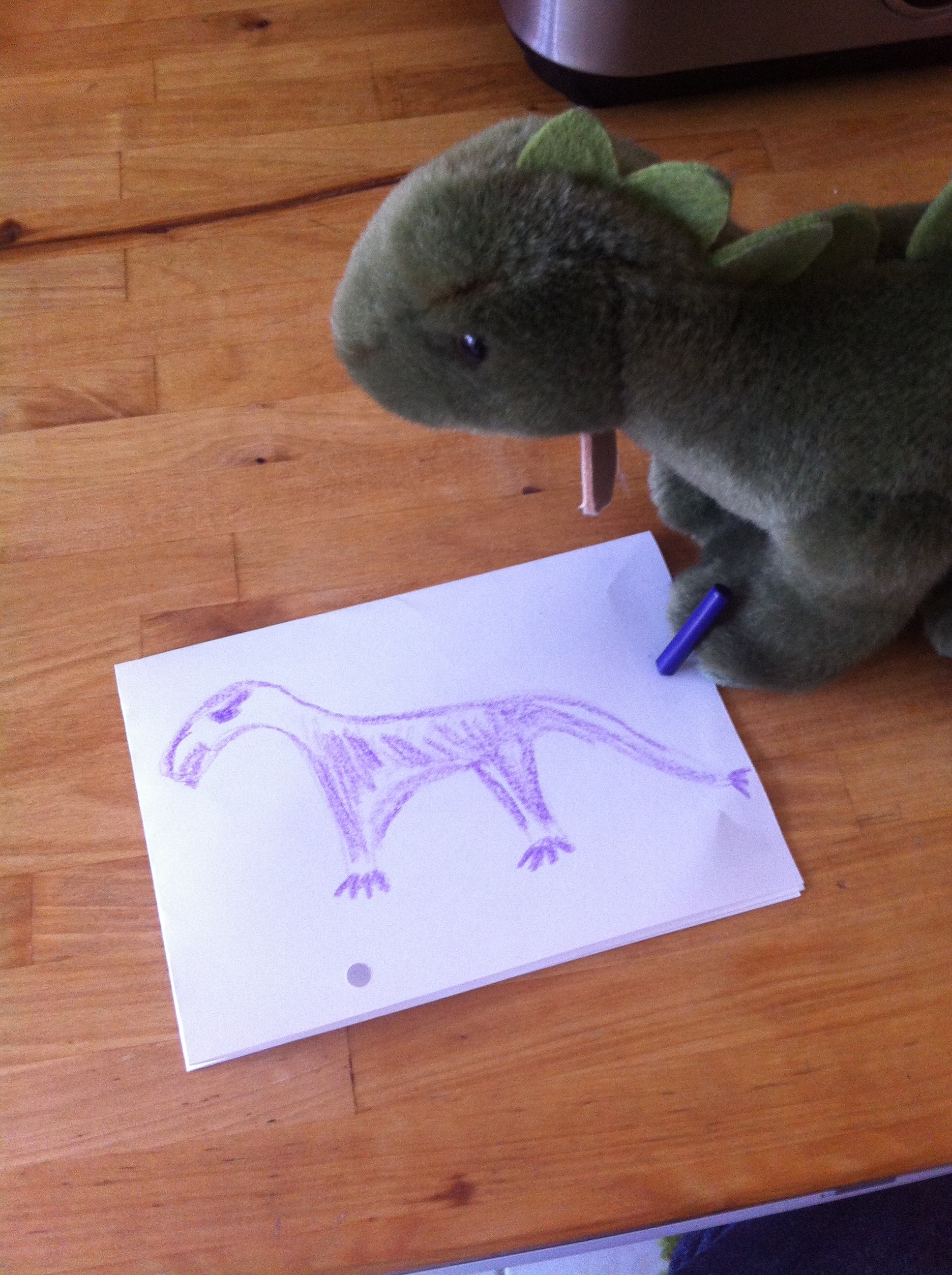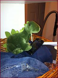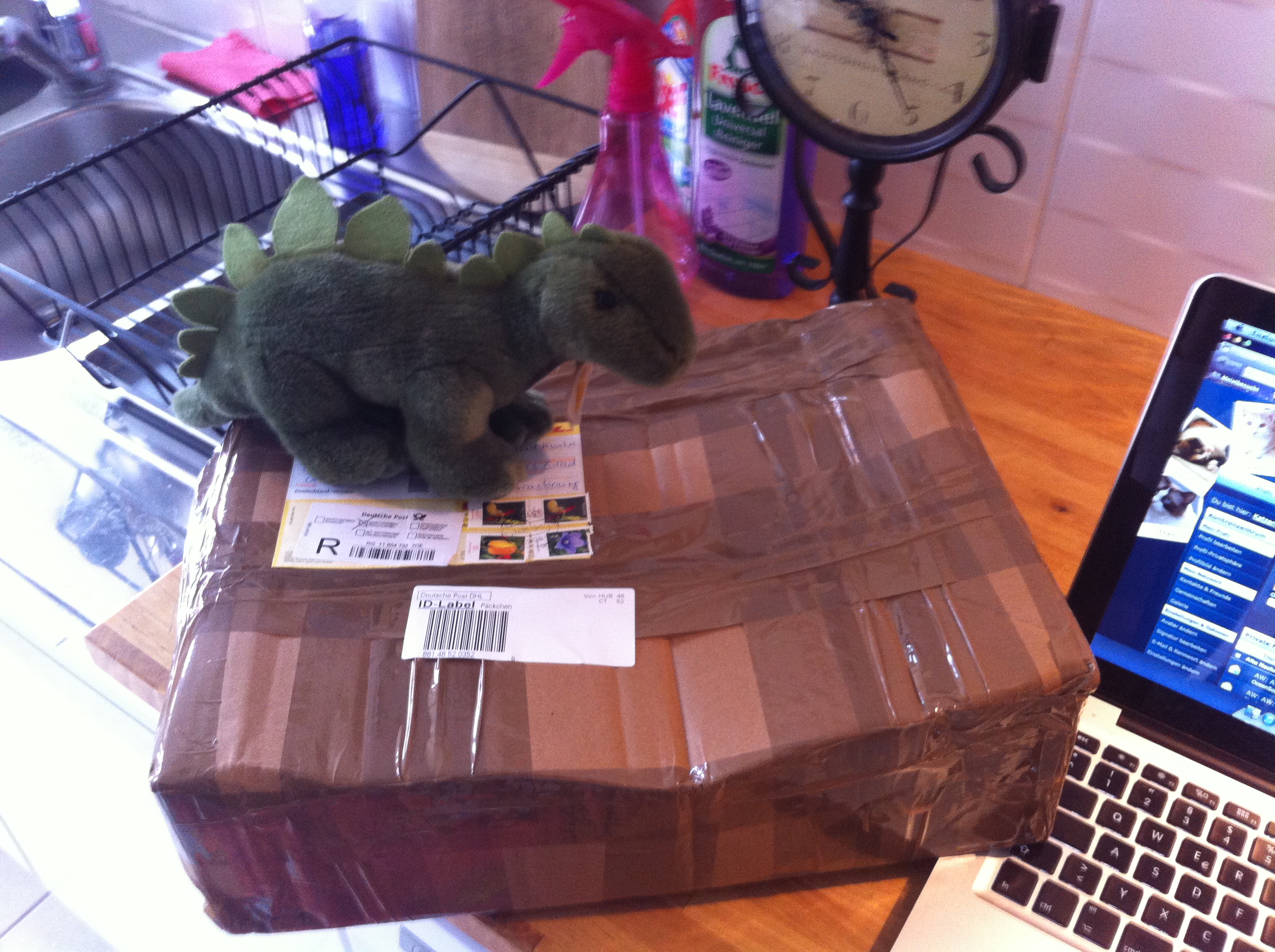 So sei Anatol dann um 1 Uhr 30 hier auf der Rollfeld-Wiese angekommen … und sei den Weg nach Hause zu Fuß zurückgekrabbelt. Es sind nur 2 1/2 Kilometer, aber für einen kleinen Stegosaurus ist das ein ziemlicher Gewaltmarsch. Schließlich sei er gegen 2 Uhr früh mit letzter Kraft die Treppe heraufgekrochen… Aber nach ein paar Stunden erholsamen Schlafs sei er nun wieder voll da und zu Diensten!