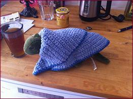 Er sieht müde und eingefallen aus. Offenbar ist dieser Tag auch an ihm nicht spurlos vorbeigegangen. Sofort nehme ich ihn hoch und setze ihn in sein Nestchen, wo er unter seine Decke kriecht, und murmelt „Elie ist in Sicherheit. Der Drachenflieger konnte erst nicht wieder starten, weil es so geregnet hat. Deshalb komme ich auch so spät…“ Er will noch etwas sagen, aber da schläft er schon. Ich lege mich nun auch hin, und bin innerhalb weniger Sekunden ebenfalls im Tiefschlaf.
